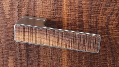 Dýhovanou plochu v pohledové části dveřního kování lze podle potřeby rychle a bez problémů vyměnit. Zvládne to každý kutil. FOTO: M&T Pro různé kombinace je k dispozici celkem sedm barev kování klik a nepřeberné množství vkládaných materiálů z pravých dřevěných dýh, kůže různých barev a struktur, skla a kovu. Všechna kování jsou opatřena systémem tichých tlačných pružin pro bezchybný a bezhlučný chod. Naprosto jedinečné jsou kliky v kolekci Minimal/Maximal, které mají tzv. neviditelné rozety. Co to znamená? Nevidíme žádné kulaté či hranaté provedení rozet, protože prostě nejsou. Klika pohledově dokonale splývá s dveřním křídlem a to lahodí oku.