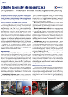 Demagnetizace zvyšuje kvalitu a životnost Vašich produktů, také produktivitu práce a naopak snižuje Vaše náklady. Dokonce i nevodivé materiály, jako jsou nerezové oceli, mohou být magneticky vodivé při svařování, broušení, ohýbání, vrtání, ohýbání a řezání. Zvláště pak pro technologie s vysokými požadavky na čistotu povrchu má demagnetizace svůj význam.
