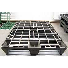 Tato paleta je vyrobena z recyklovaných plastů PE a nemá žádnou kovovou výztuhu. Výroba byla koncipována na lehkou jednorázovou paletu, tudíž je vhodná pro leteckou přepravu . Zarážky jsou vhodné proti posunu při přepravě. Paleta je snadno omyvatelná, má zakulacené rohy a znamenitý design.