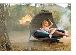 Zahradní proutěný nábytek řady Ocean má nad sebou oválnou stříšku a vypadá jako plážový koš či samostatný kryt. Kouzelné jsou i textilní baldachýny na konstrukci kolem křesla či pohovky. Je to nejen praktický, ale i originální zahradní prvek.