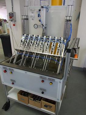 Testovací a nastavovací pracoviště jsou projektována a vyráběna s různým stupněm automatizace, tedy od pracovišť s ručním zakládáním testovaného výrobku až po plné bezobslužné automaty s automatickým podáváním výrobku a automatickým tříděním otestovaného či nastaveného výrobku.Součástí těchto pracovišť jsou různé testovací a nastavovací přístroje. Mezi nejčastější testovací technologie patří mechanické měření rozměrů, zkouška těsnosti úniku vzduchem nebo kapalinou kamerové kontroly a měření jiných mechanických, pneumatických, hydraulických a elektrických parametrů. Nastavovací pracoviště vychází z koncepce testovacích pracovišť a možností přestavení výrobku pro dosažení požadovaných parametrů. Objem roční produkce 25-50 mil. Kč